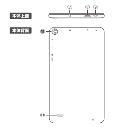 カメラを利用するアプリで使用します。 - ⑪内蔵スピーカー