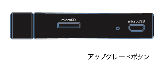 7 本体側面のmicroUSB端子横の「アップグレードボタン」を針金などで押したまま、PCとUSB接続します。